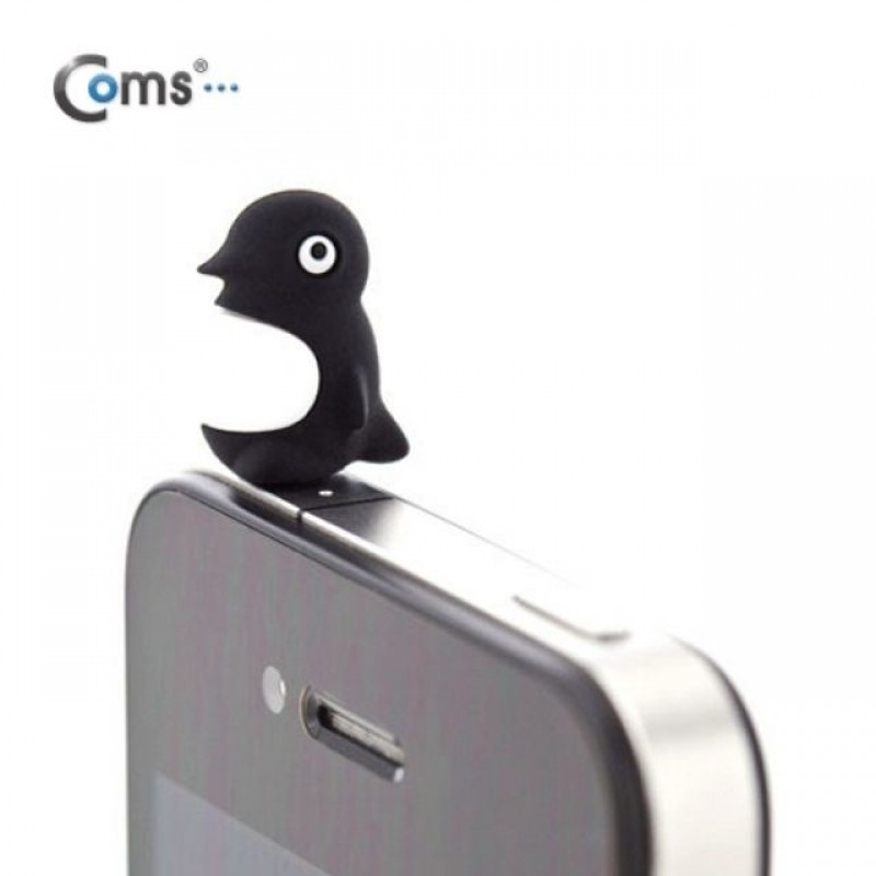 Coms 스마트폰 이어캡 팽귄 캐릭터 블랙